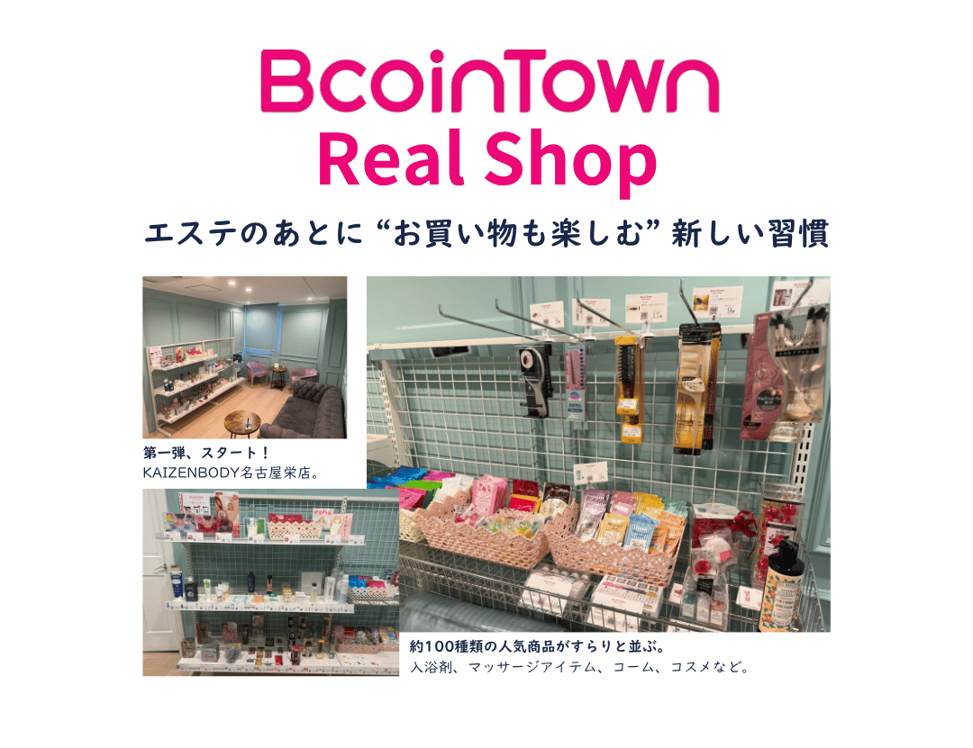 先日、KAIZENBODY名古屋栄店でスタートした『BcoinTown Real Shop』が、いまお客様からとてもご好評をいただいています。
