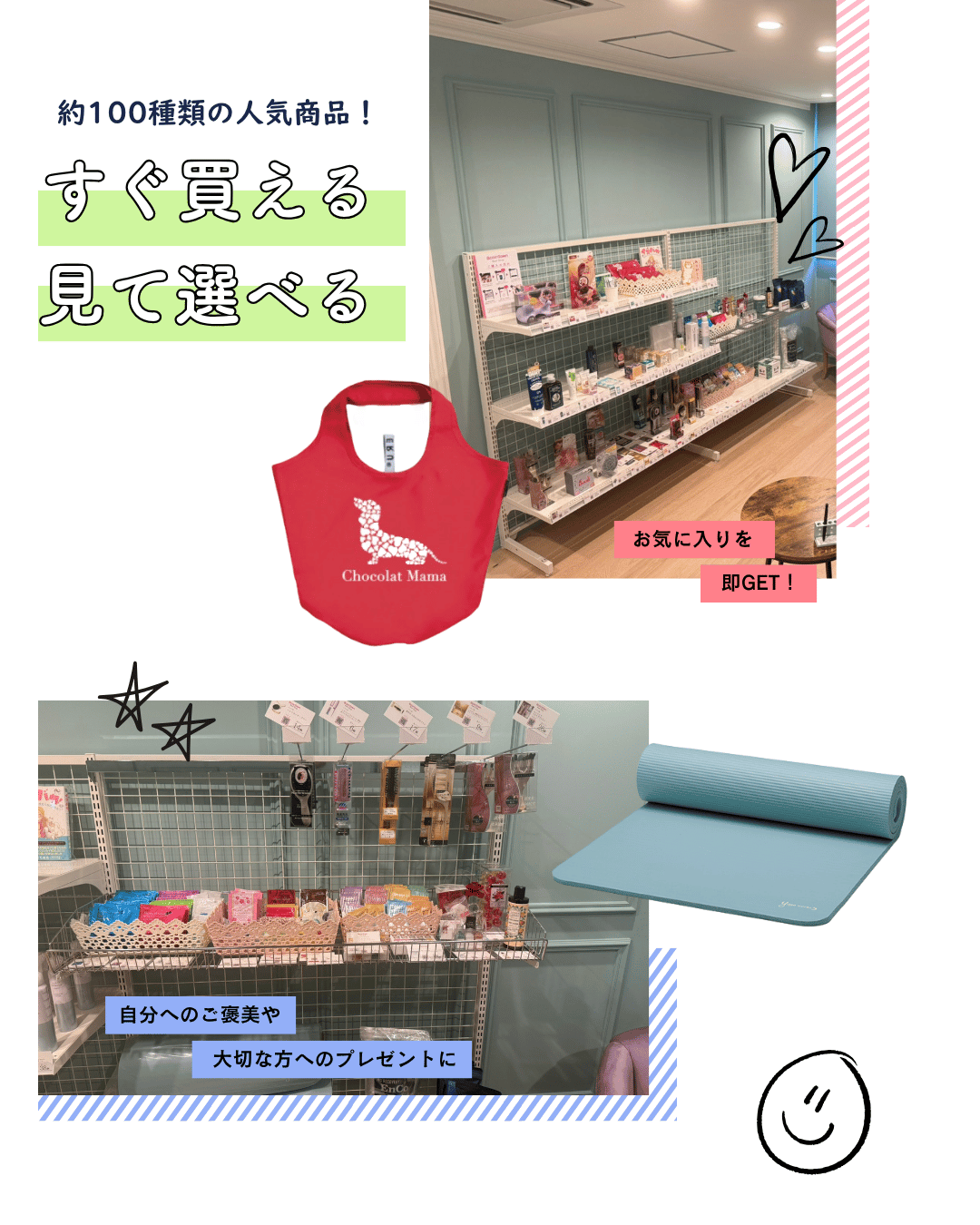 施術後にそのまま、コスメや入浴剤、ヨガマットなどを美コインで選び、そのままお持ち帰り。