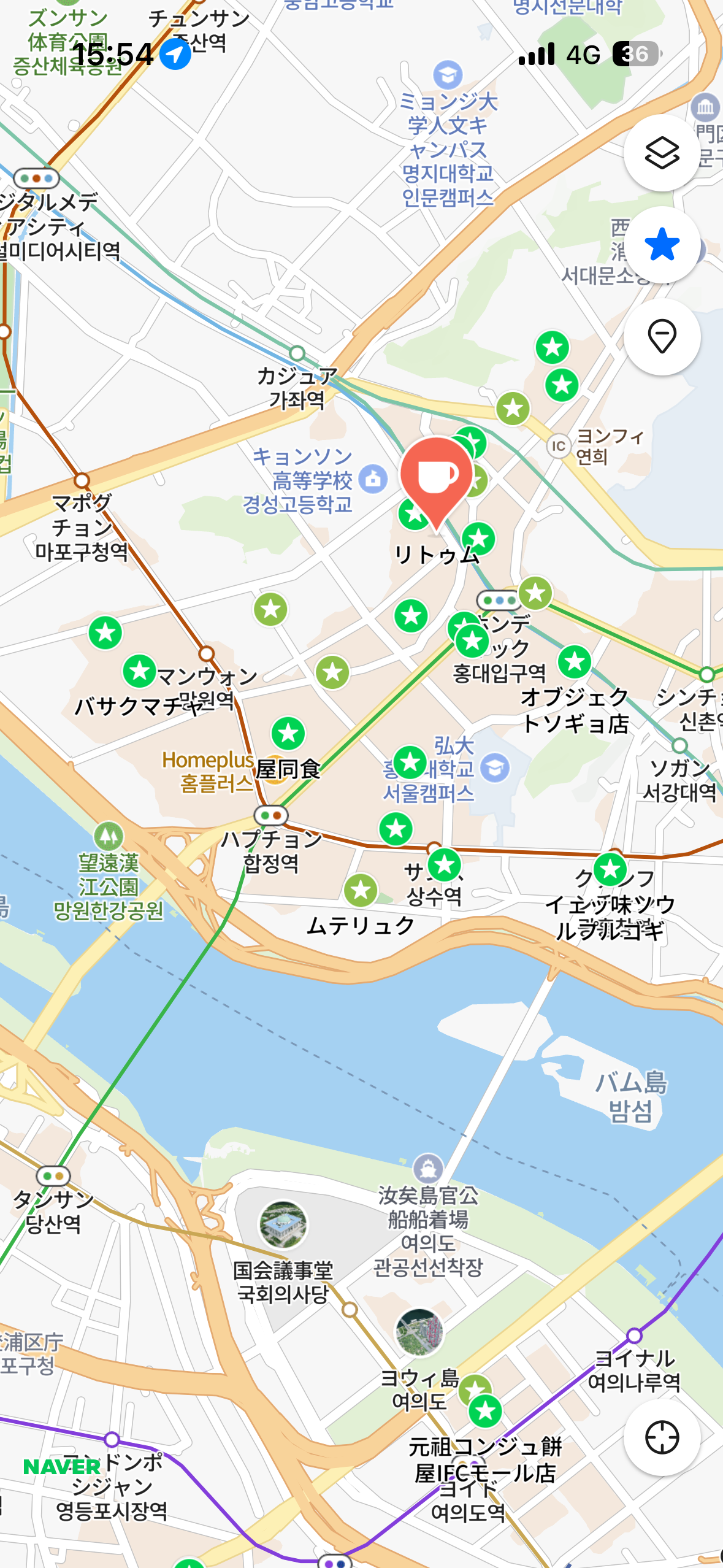 延南洞のカフェrytm(リトゥム)へ行った後、次のカフェは何処に行こうかネイバーマップを開いた。