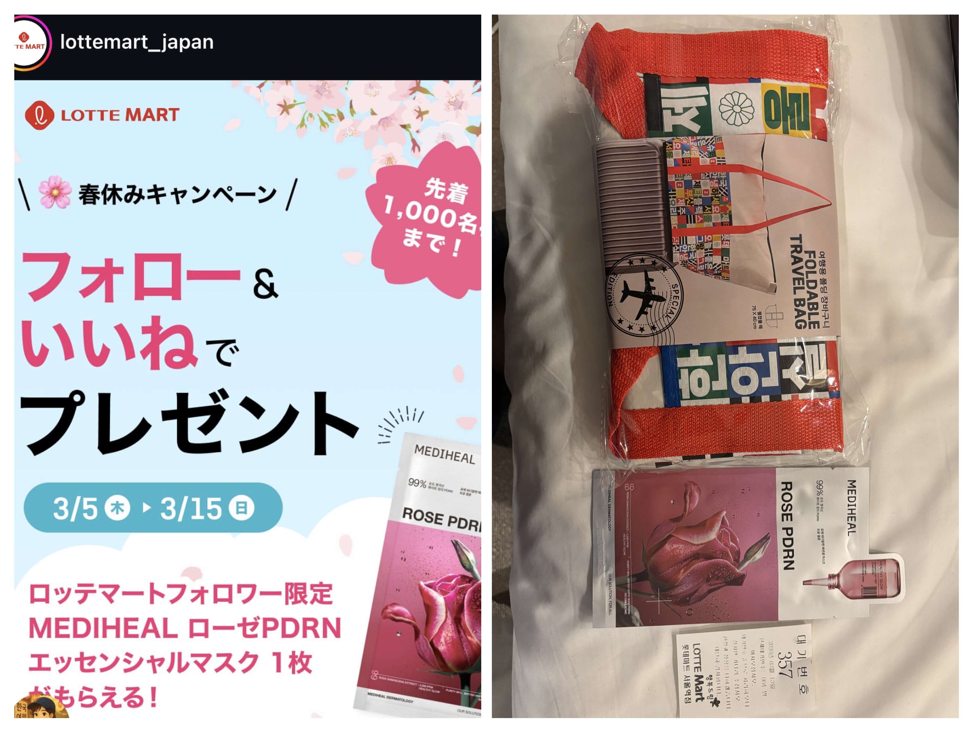 二つめは…ソウル駅にあるロッテマートでたまたま店頭に貼ってあった日本語ポスターで知った。買い物前にゲットした。ロッテマートでは10万ウォン以上購入するとしっかりとしたエコバッグ?がいつもいただける。今回はレジで何も言われなかったが、サービスカウンターでレシートをみせたらバッグがもらえた。