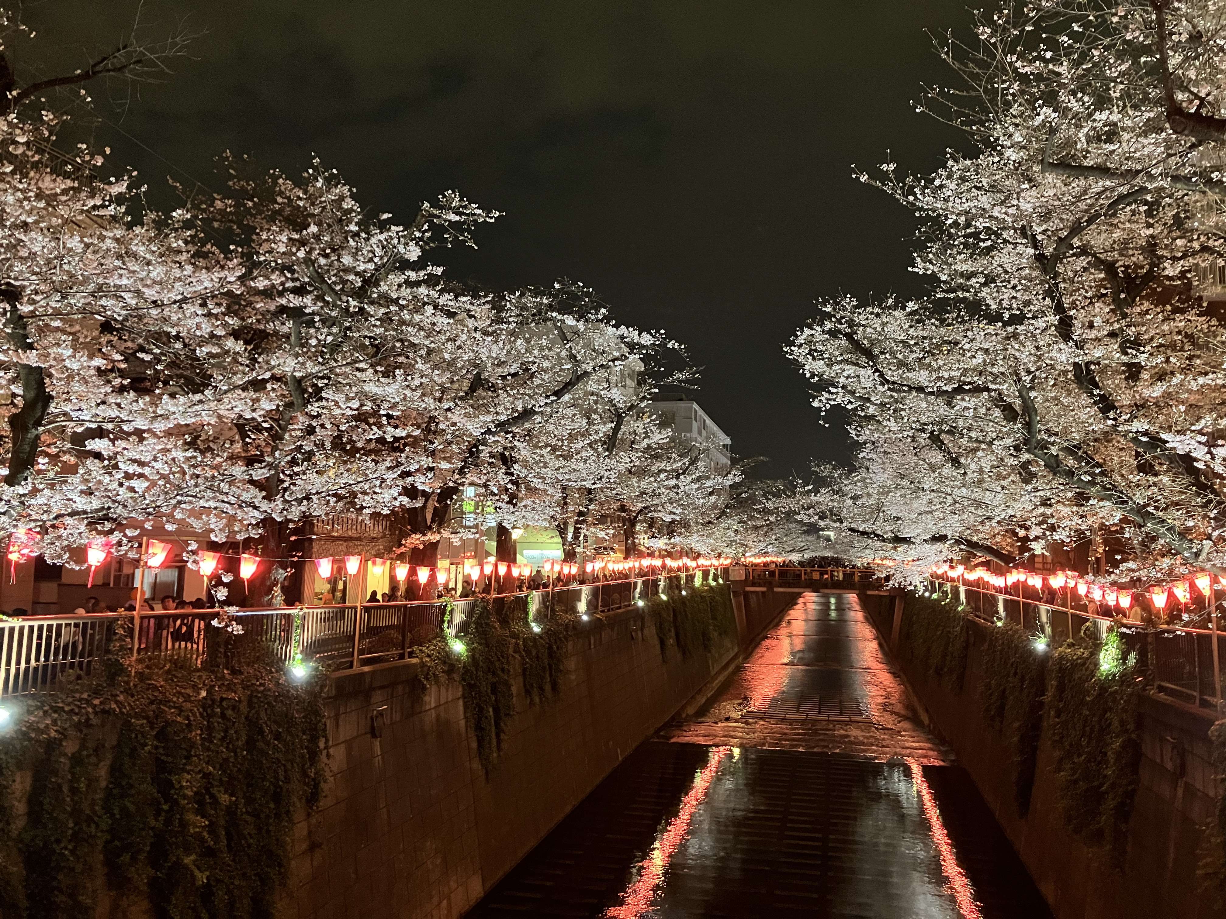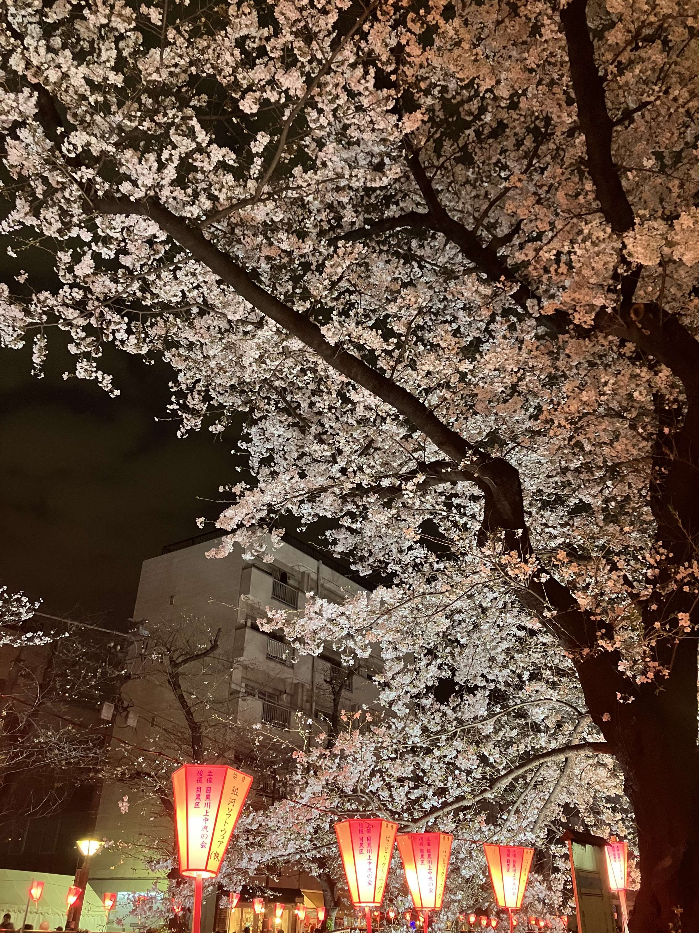 中目黒の夜桜を見に行きました。中目黒の桜はここ数年毎年見に行っていますが、いつ見ても綺麗で感動します。周りには美味しそうな屋台がたくさんありましたが、レストランを予約していたので食べるのを我慢しました。