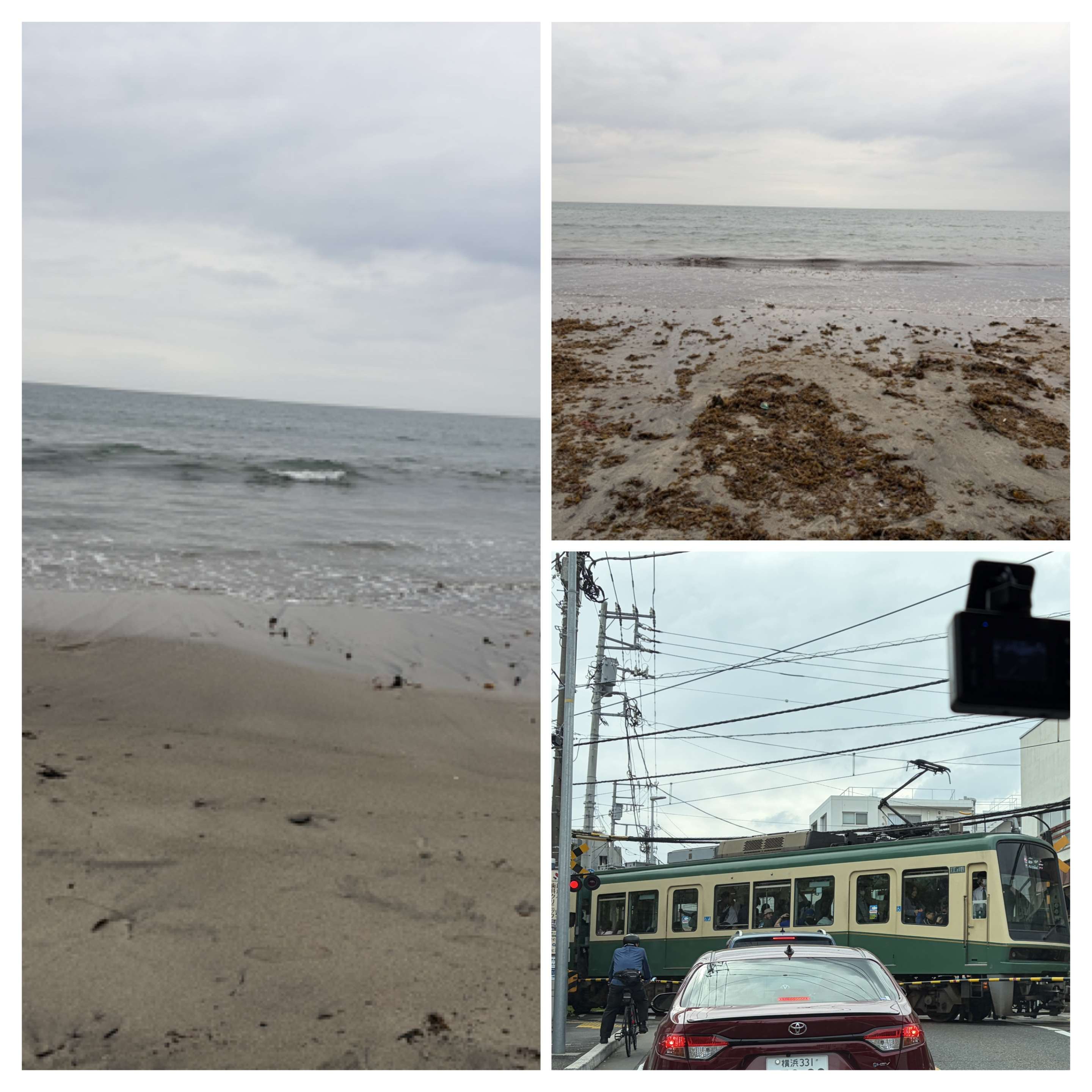 神奈川県に住んでいた頃は毎週のように通っていた由比ヶ浜。久しぶりに訪れた。天気は曇り。海に来たのに晴れていないのは残念だった。