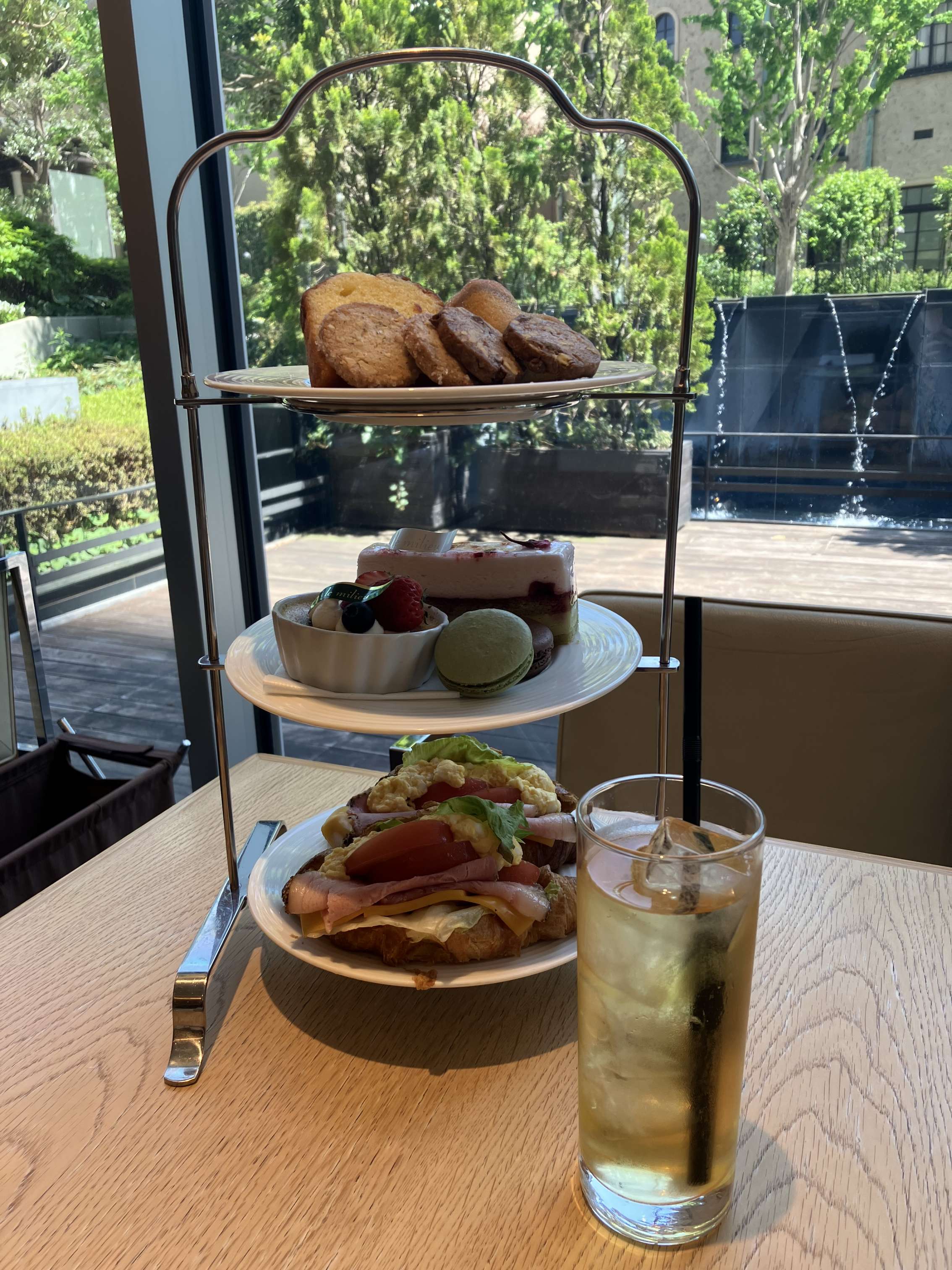 ラプレシューズ紀尾井町でアフタヌーンティーをしました。下段のサンドイッチが美味しかったです。お土産に焼き菓子もいただき、大満足でした。外の景色を見て、ゆっくりした時間を過ごせました。