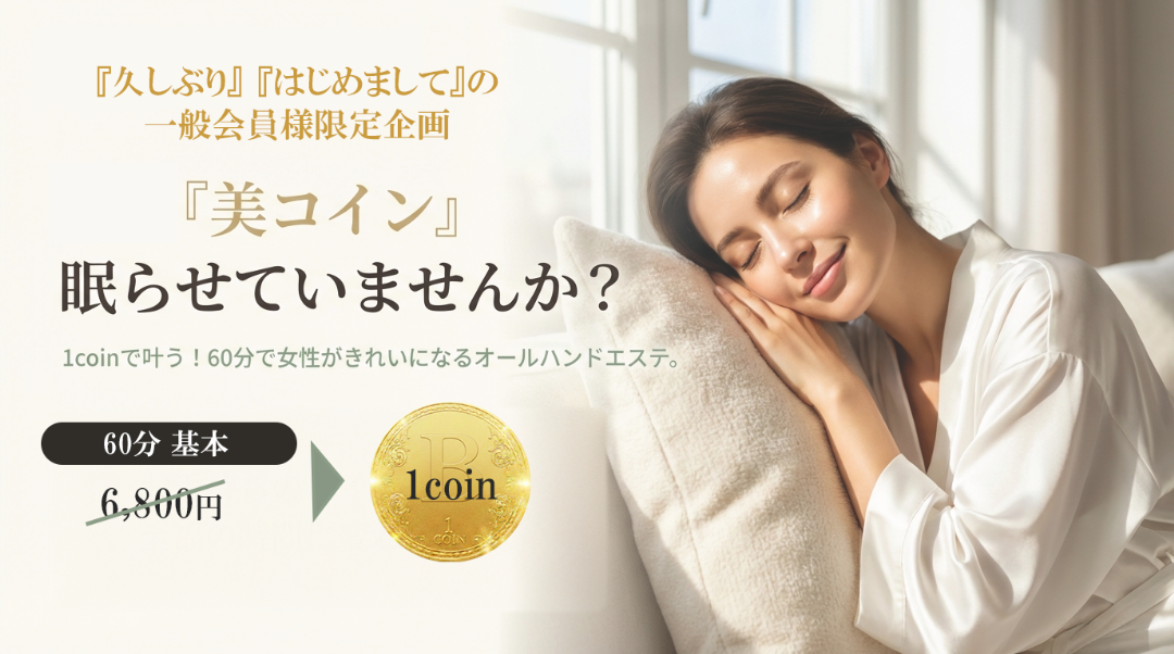 なんと、その美コイン1coin(1枚)で、通常6,800円のエステが受けられるとしたら……とってもワクワクしませんか?